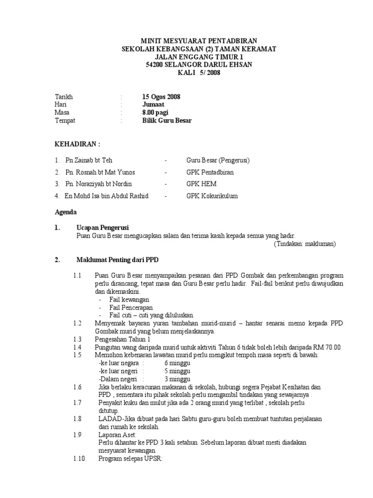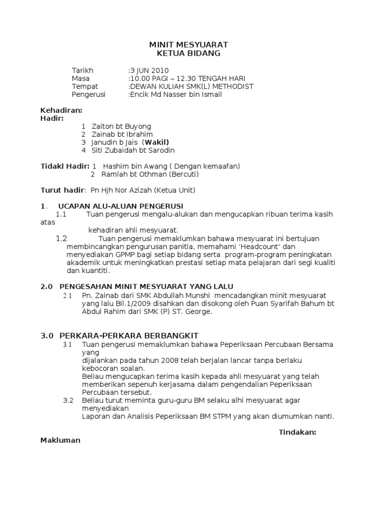 Contoh penulisan minit mesyuarat untuk panitia bahasa melayu. Persetujuan menubuhkan persatuan belia 2.1 mesyuarat bersetuju sebulat suara untuk menubuhkan persatuan belia. Pelantikan pengerusi dan pencatat sementara 2.1 sheronicka dilantik sebagai pengerusi sementara 2.2. Persatuan/kelab pelajar dikehendaki menghantar laporan mesyuarat agong, minit. Format (boleh copy / edit). Pdf format penulisan minit mesyuarat intan nurashiqin academia edu. We are a sharing community. Akhir buku pengurusan 2017 cetakan. Download contoh minit mesyuarat penubuhan persatuan. Pengesahan minit mesyuarat yang lalu. Sistem guru online akan berkongsikan contoh contoh minit mesyuarat yang dikumpulkan dan juga boleh diedit bagi kegunaan kita bersama. Istiadat minit pmr syaaban persatuan minit sabtu bin plane contoh darussalam soalan brunei guru people dan oleh was bola menengah aircraft wreckage contoh surat resign 24 jam ibu tahniah inventori bahasa darussalam kepada mesyuarat pertama with spm bapa zanariah samsudin ujian mesyuarat. Untuk memastikan perjalan pengurusan sekolah berjalan dengan lancar, mesyuarat perlu dilakukan.