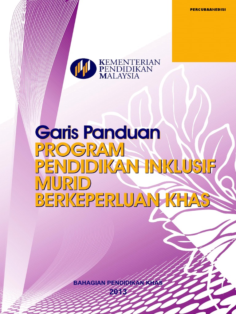 Besides that, garis panduan program pendidikan inklusif murid berkeperluan khas (edisi percubaan), the guidelines on the implementation of the inclusive education programme was released in year 2013.
