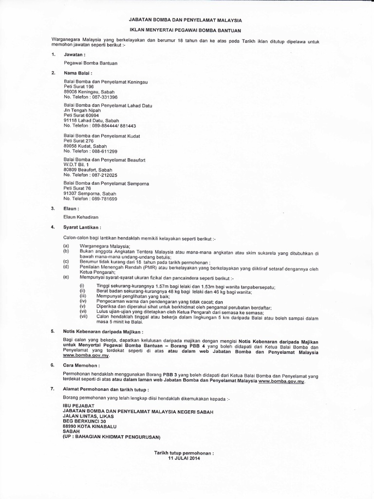 Portal Rasmi Jabatan Bomba Dan Penyelamat Malaysia Program Kempen Keselamatan Kebakaran Peringkat Zon Tawau Negeri Sabah Jabatan Bomba Dan Penyelamat from www.bomba.gov.my Sabah rekod lebih 1,700 kebakaran terbuka sejak januari. Peluang permohonan terbuka kepada pemohon yang berkelayakan dan berminat untuk mengisi kekosongan jawatan di jabatan bomba dan penyelamat tahun 2020. Pantas dan berani anggota bomba latihan rehearsal untuk persembahan sambutan merdeka. Taat dan setia, cekal dan sabar. Jabatan bomba dan penyelamat kaardil. Jalan sembulan, karung berkunci no. For faster navigation, this iframe is preloading the wikiwand page for jabatan bomba dan penyelamat malaysia. Anda ingin bekerja di sektor kerajaan?
