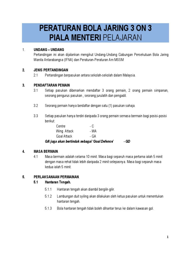 Peraturan Bola Jaring Docx Document from reader012.docslide.net 1 tahun 1970 tentang keselamatan kerja. Tidak dapat dinafikan, bola sepak adalah sukan yang paling digemari dan popular di dunia. Disebut pasal 27 ayat 3 uu ite. Kalender hijriah untuk tahun 2020 masehi. View more presentations from itaadam. Permainan bola jaring diambil dari permainan bola keranjang. Setiap permainan diadili oleh dua orang pengadil. Waktu kecederaan & gangguan diberikan.