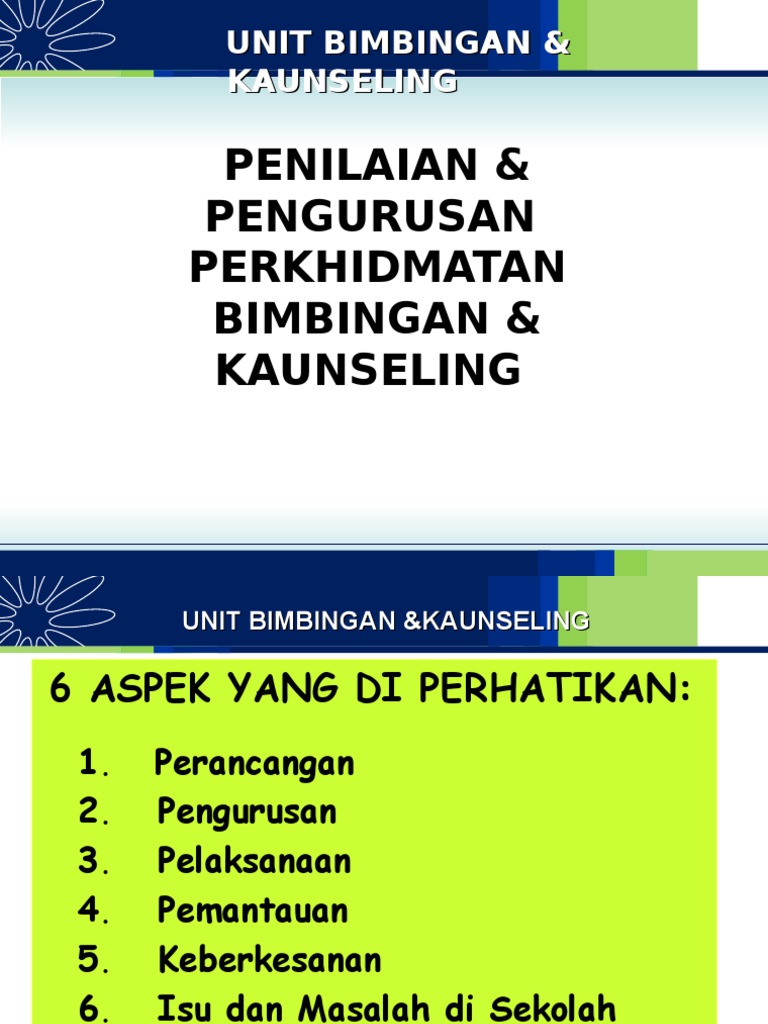 Bimbingan dan kaunseling untuk kursus diploma perguruan semester 3 4. Sesi bimbingan kelompok tidak terikat dengan terma dan syarat yang terkandung dalam kontrak kerahsiaan sesi kaunseling kelompok. 7.2.1 menyediakan perkhidmatan penyuburan dan pengayaan meliputi aspek. For more information and source, see on this link : Pengurusan perkhidmatan bimbingan dan kaunseling sekolah sapora sipon abstrak perkhidmatan bimbingan dan kaunseling (b & k) sekolah memainkan peranan penting dalam agenda pendidikan negara terutamanya bagi mencapai matlamat falsafah pendidikan negara dan menyambut cabaran wawasan 2020.